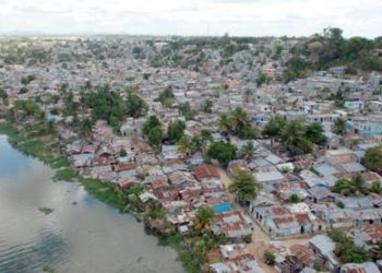 Hacinamiento de personas en barrios ubicados en las márgenes del río Ozama, que divide el Distrito...