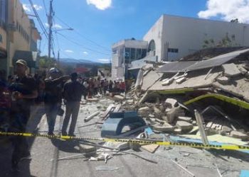 Un edificio de cuatro niveles, donde funcionaba una mueblería, se desplomó este miércoles en La Vega,...