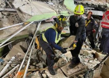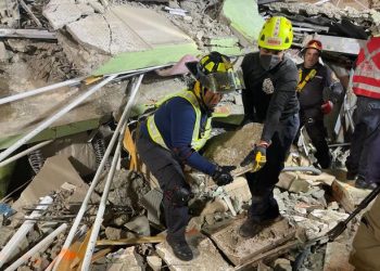 Brigadas que se encuentran desde hace más de seis horas en labores de rescate, tras el...